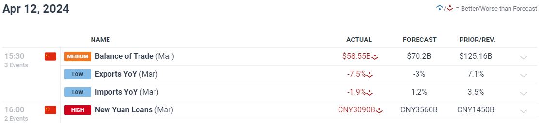 Өнгөрсөн Баасан гарагт БНХАУ –н 3 –р сарын гадаад худалдааны мэдээ гарлаа. Өмнөх 3 –р сард экспорт болон импортын хэмжээ хүлээлтээс их хувь хэмжээгээр буурсан буюу харгалзан 7.5%, 1.9% буурчээ. Энэ нь гадаад худалдааны тэнцлийг 58.55 тэрбум ам.долларт хүргэж, өмнөх сарын дүн болох 125.16 тэрбум ам.доллароос 54% -р буурч гарав.