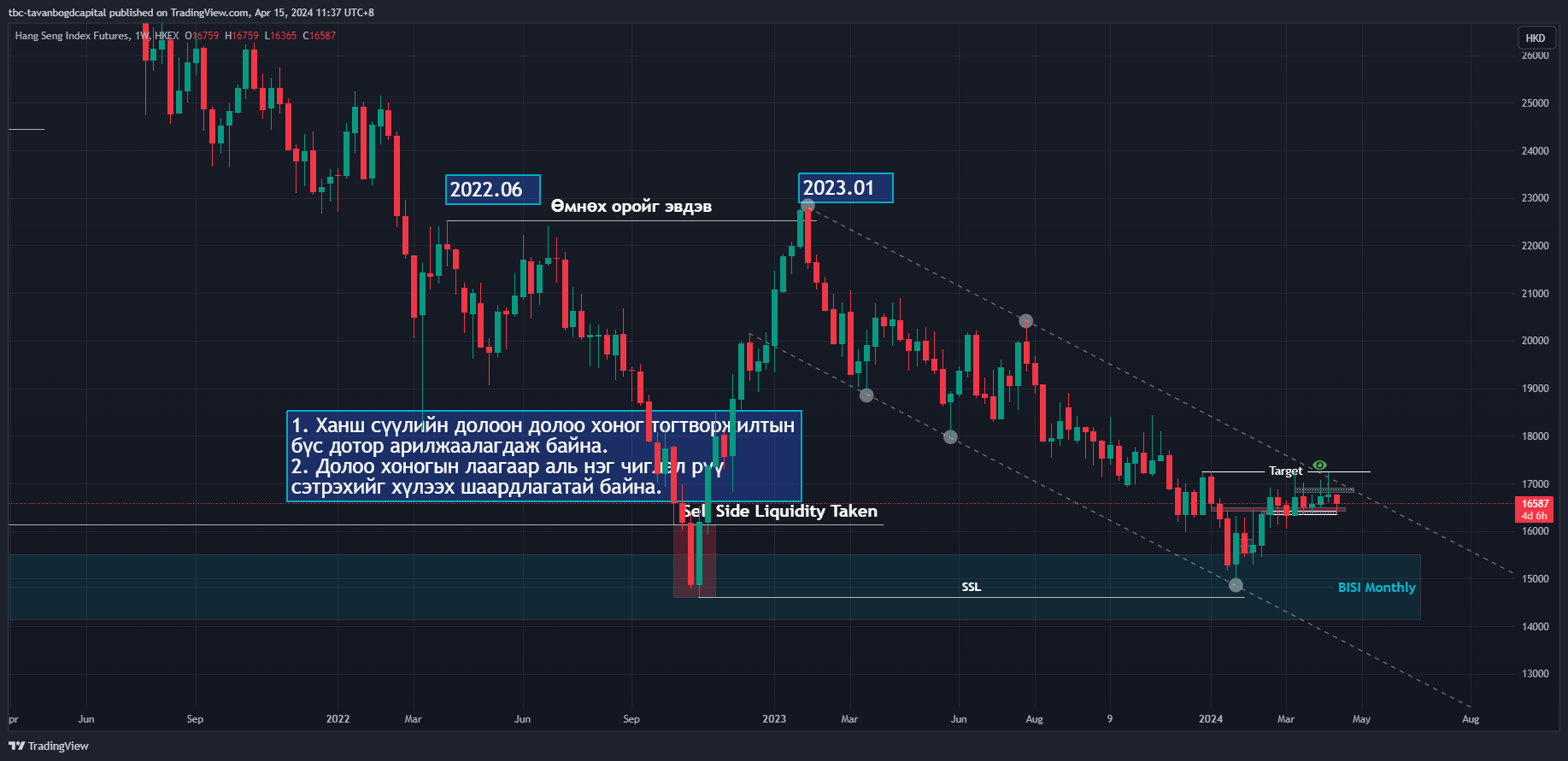 БНХАУ –н хөрөнгийн зах зээлийн “Hang Seng” индекс сүүлийн хэдэн сар тогтворжилтод арилжаалагдаж байна. Тэгвэл маргааш БНХАУ –н I улирлын ДНБ –ний өсөлтийн хэмжээ гарах хуваарьтай. Уг үзүүлэлт бүтэн жилийн өсөлтийн зорилтот түвшин болох 5% -д БНХАУ хүрч чадах эсэхийг тодорхойлох хамгийн чухал статистик мэдээ тул хөрөнгө оруулалагчид анхааралтай ажиглаж байна. Уг мэдээнээс шалтгаалан “Hang Seng” индекс өсөлтийн давлагааг үргэлжлүүлэх аль эсвэл буцаад унах эсэх нь шийдэгдэх төлөвтэй байна.