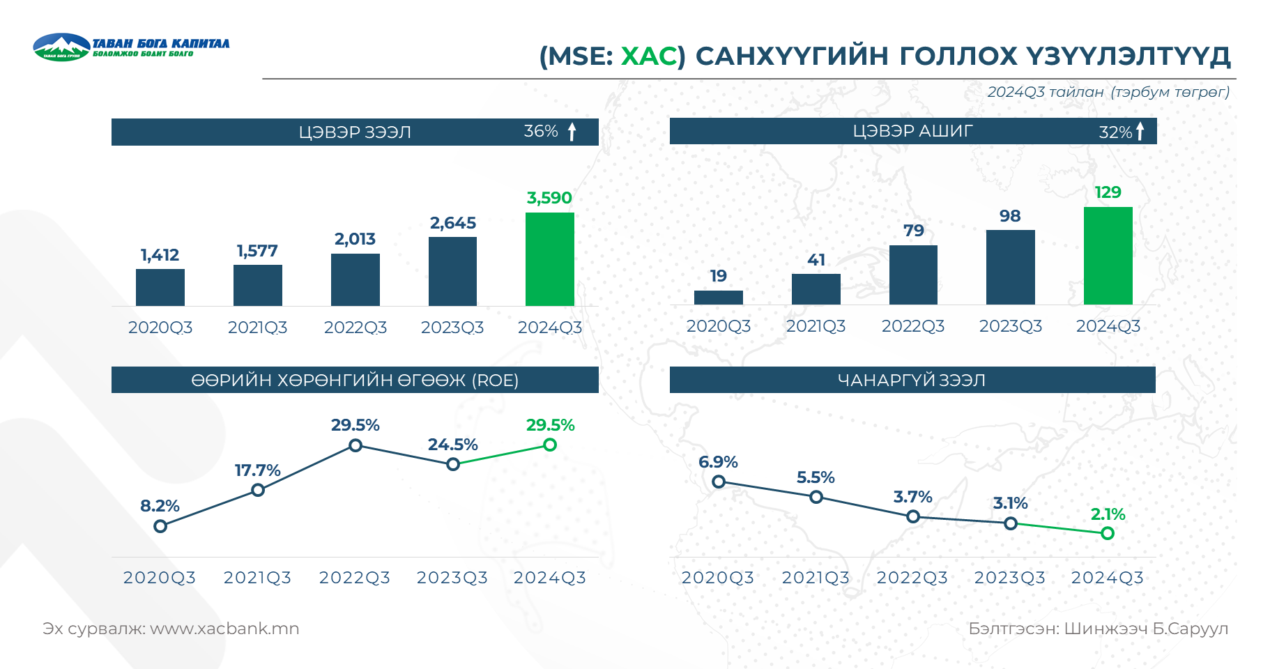 Цэвэр зээлийн багц 36%-аар өссөн үзүүлэлттэй байгаа бол чанаргүй зээл буурч 2.1%-д хүрлээ.