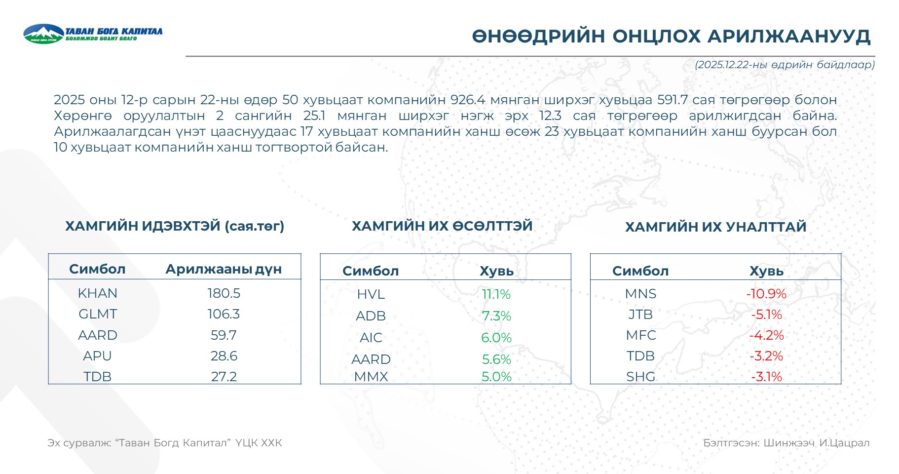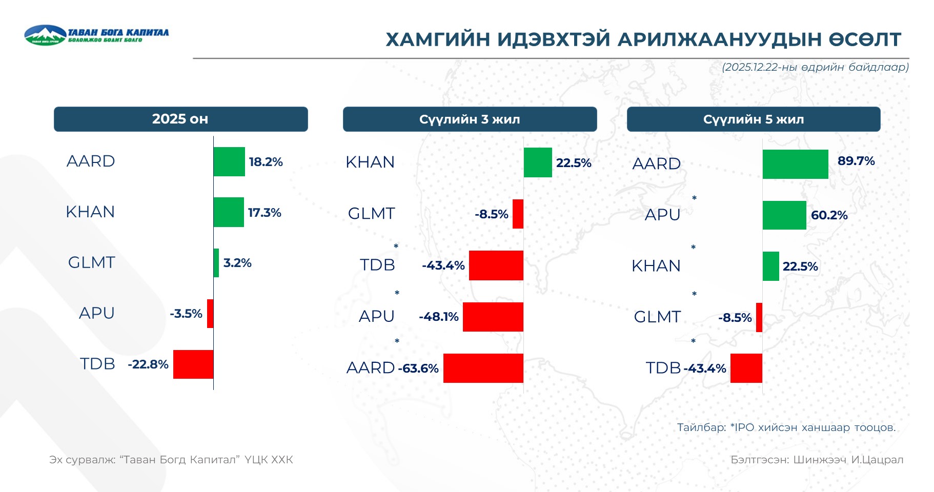 АРИЛЖААНЫ ИДЭВХЭЭР ТЭРГҮҮЛСЭН ХУВЬЦААНУУД ХЭР ӨСӨЛТТЭЙ БАЙНА ВЭ?