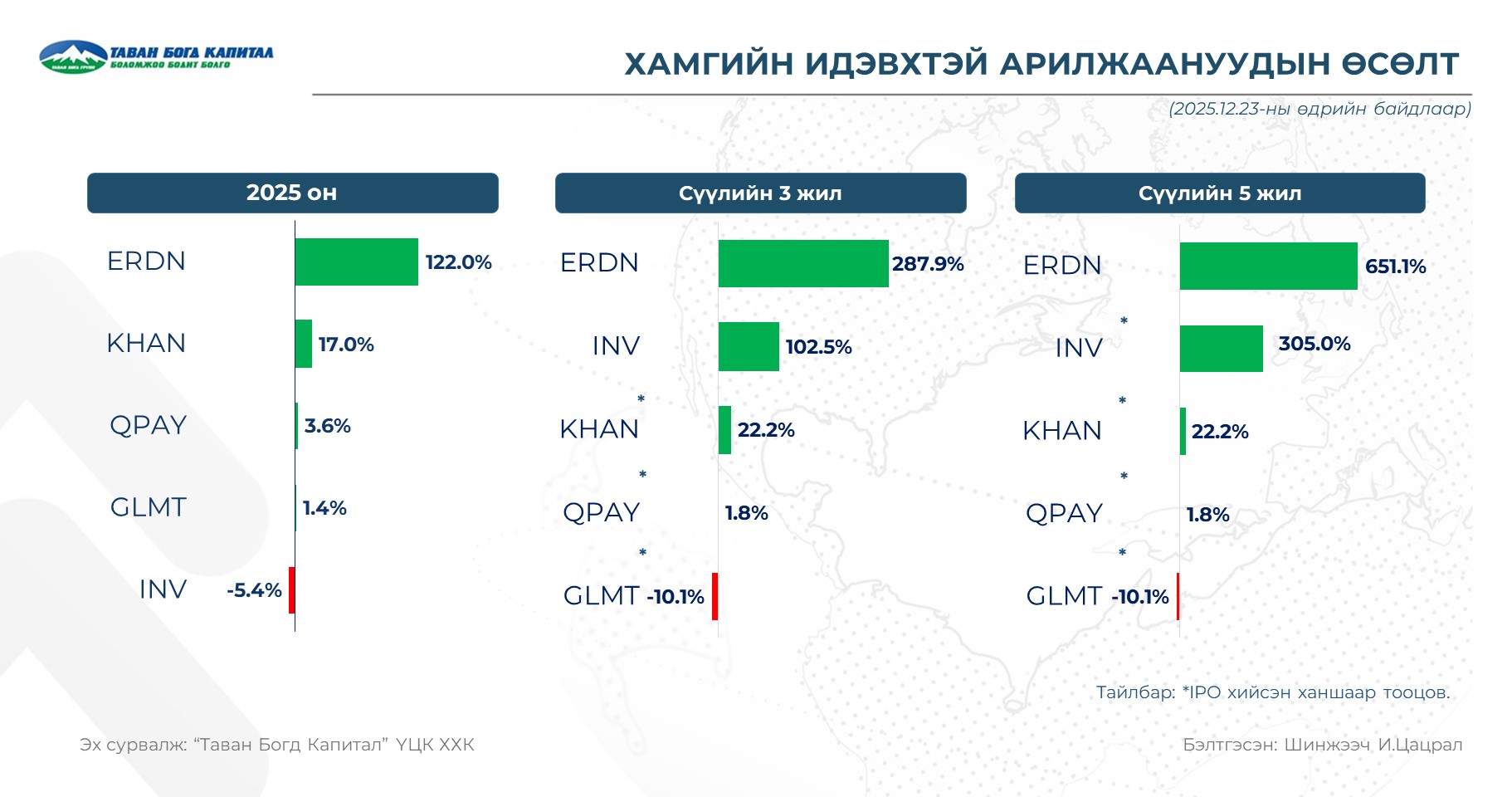 АРИЛЖААНЫ ИДЭВХЭЭР ТЭРГҮҮЛСЭН ХУВЬЦААНУУД ХЭР ӨСӨЛТТЭЙ БАЙНА ВЭ?