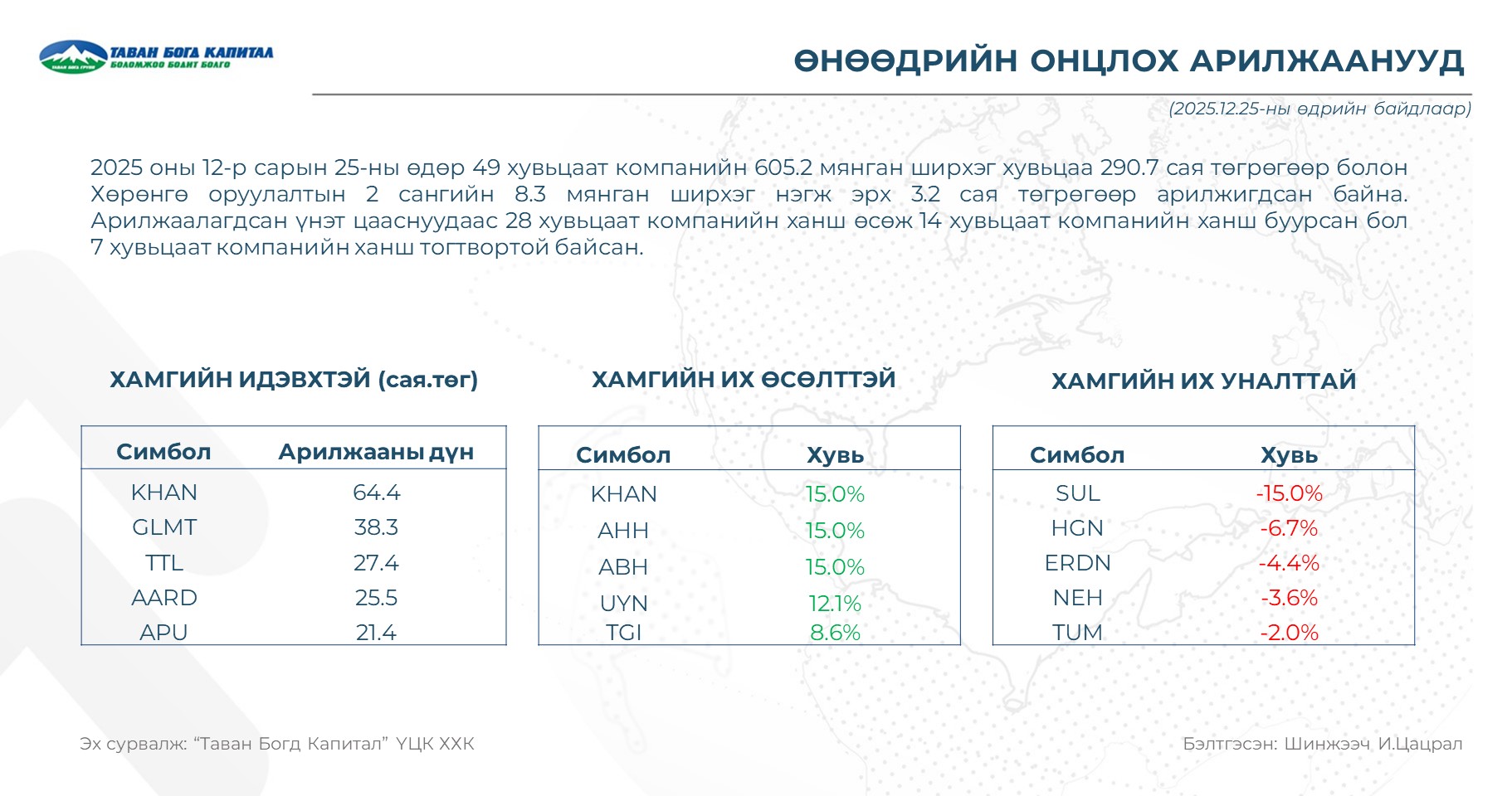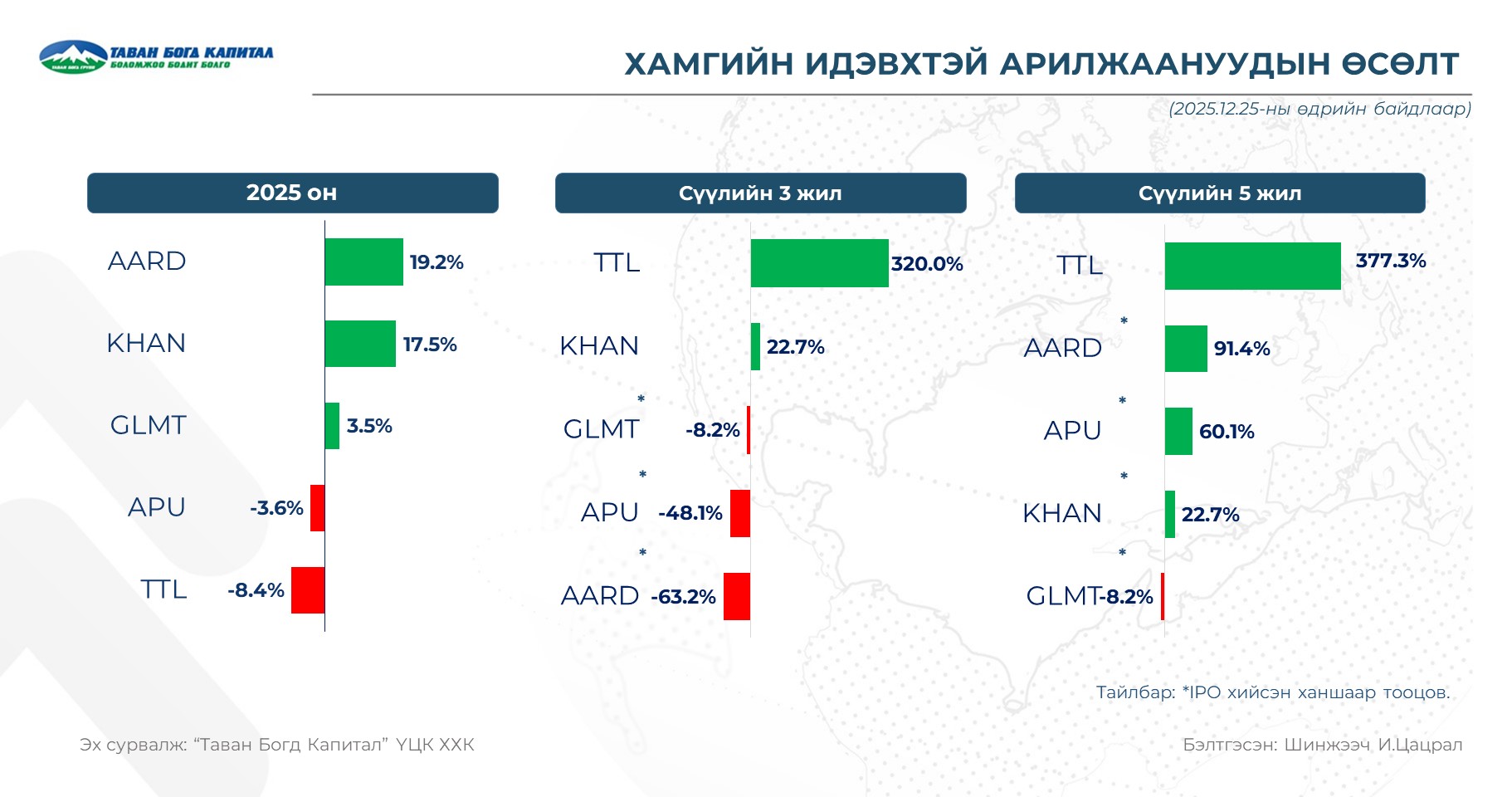 АРИЛЖААНЫ ИДЭВХЭЭР ТЭРГҮҮЛСЭН ХУВЬЦААНУУД ХЭР ӨСӨЛТТЭЙ БАЙНА ВЭ?
