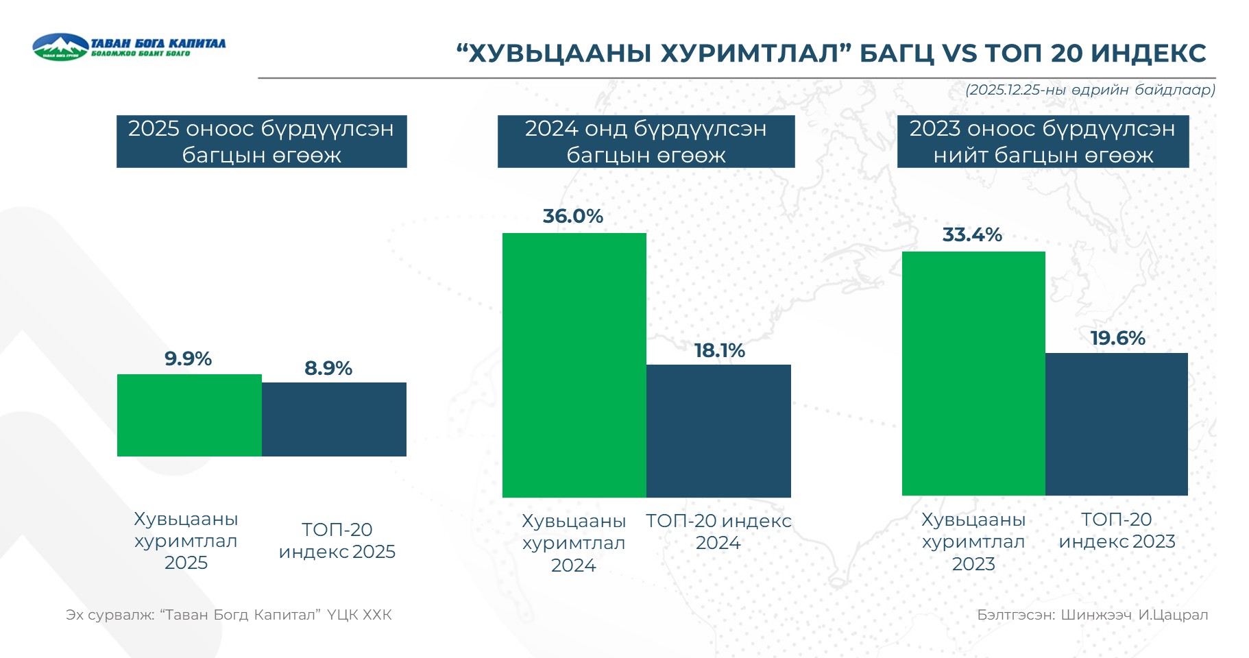 - TOП20 индекс 2025 оны эхнээс 8.9%-аар өсөж 54,278.7 нэгж болов.