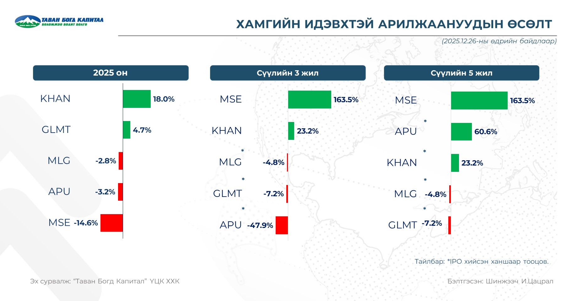АРИЛЖААНЫ ИДЭВХЭЭР ТЭРГҮҮЛСЭН ХУВЬЦААНУУД ХЭР ӨСӨЛТТЭЙ БАЙНА ВЭ?