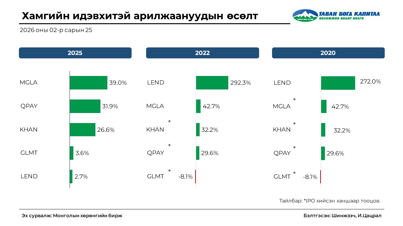АРИЛЖААНЫ ИДЭВХЭЭР ТЭРГҮҮЛСЭН ХУВЬЦААНУУД ХЭР ӨСӨЛТТЭЙ БАЙНА ВЭ?