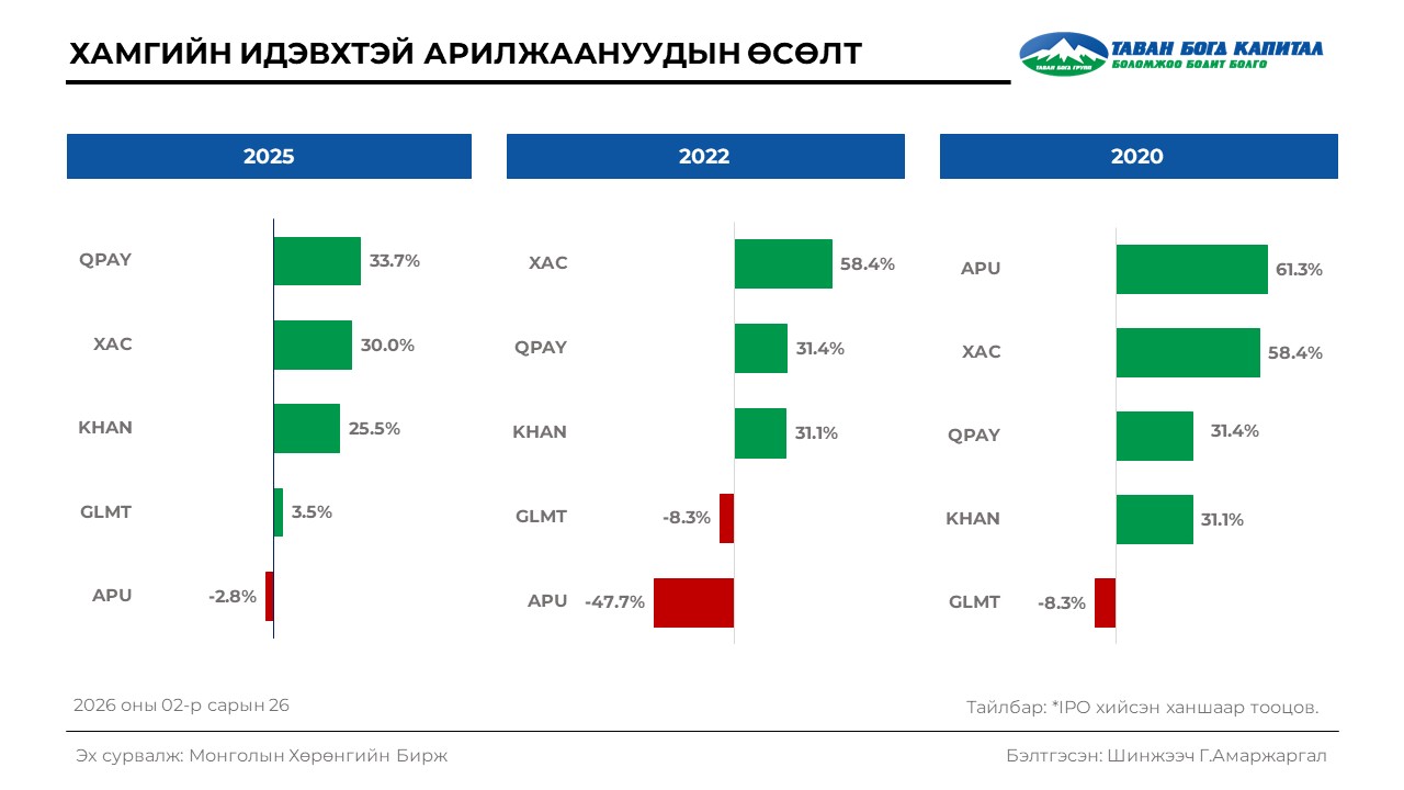 АРИЛЖААНЫ ИДЭВХЭЭР ТЭРГҮҮЛСЭН ХУВЬЦААНУУД ХЭР ӨСӨЛТТЭЙ БАЙНА ВЭ?