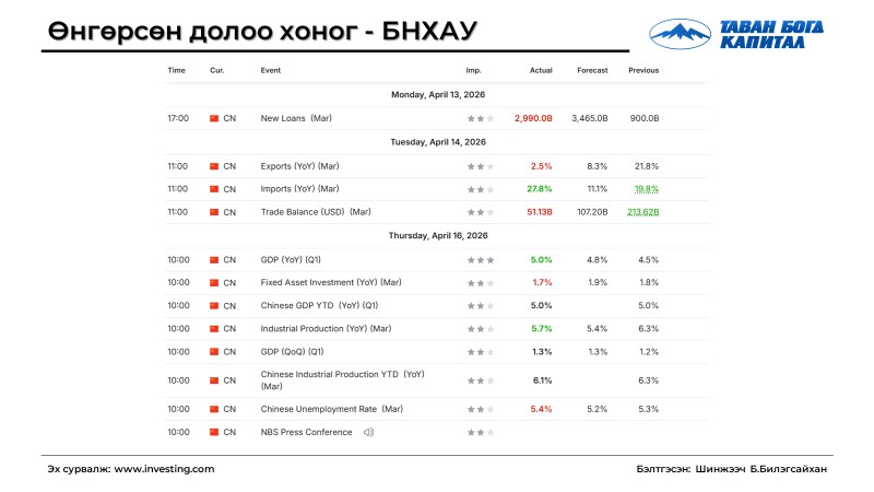 Долоо хоногийн тойм (2026.04.13-2026.04.17)
