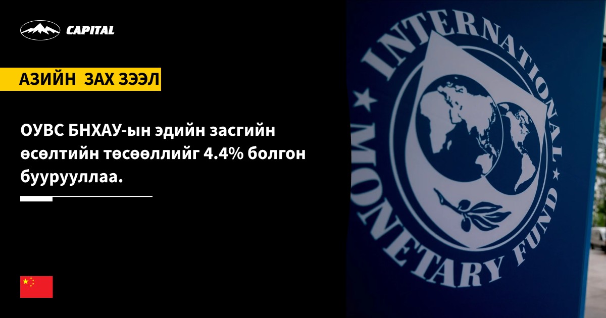Олон Улсын Валютын Сан (International Monetary Fund) БНХАУ-ын 2026 оны эдийн засгийн өсөлтийн төсөөллийг 4.4% болгон бууруулснаа мэдээллээ. Энэ нь 2026 оны нэгдүгээр сард гаргасан үнэлгээнээс 0.1 нэгж хувиар доогуур үзүүлэлт бөгөөд дотоод эдийн засгийн сулрал болон Ойрх Дорнод дахь геополитикийн хурцадмал байдлын нөлөөг тусгасан байна. Гэсэн хэдий ч уг төсөөлөл нь өмнөх оны аравдугаар сарын үнэлгээнээс өндөр хэвээр байгаа нь бодлогын дэмжлэг тодорхой хэмжээнд нөлөөлж буйг илтгэж байна. Энэхүү төсөөлөл нь Бээжингийн 4.5–5% албан ёсны зорилтоос доогуур байна...Дэлгэрэнгүйг эндээс уншина уу.
