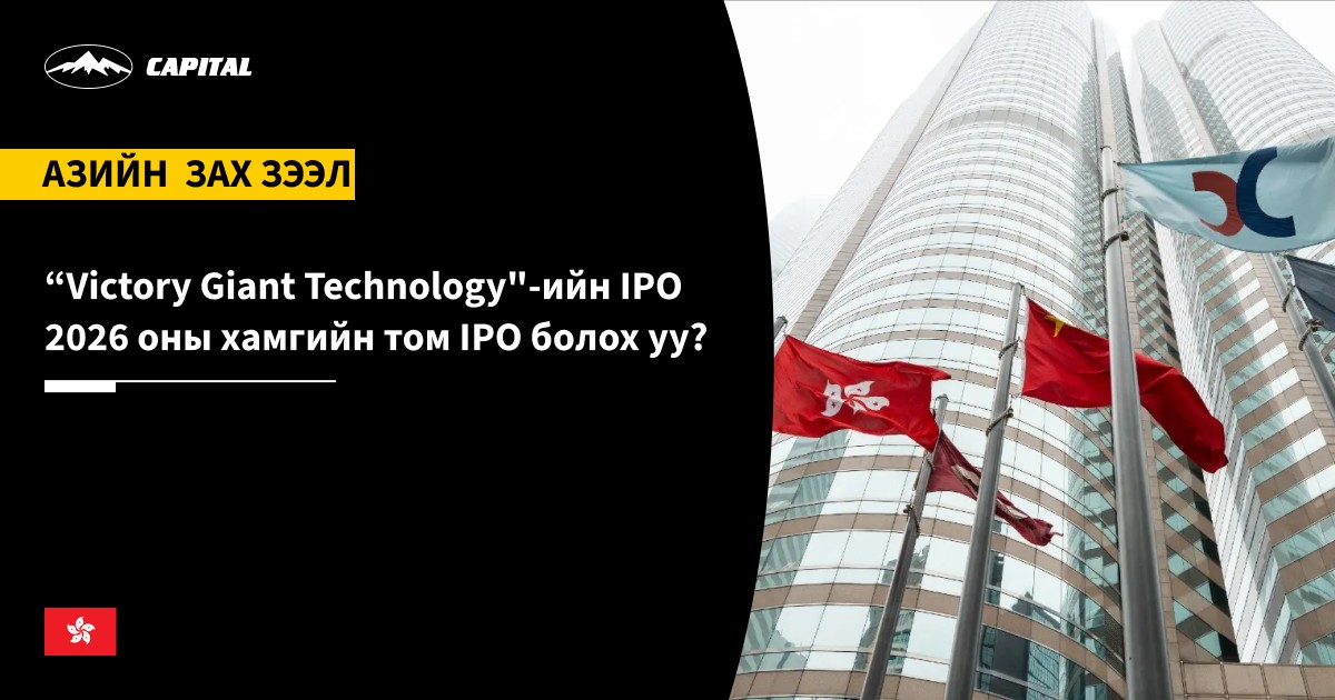 Хятадын электроникийн хэвлэмэл хавтан (Printed Circuit Board, PCB) үйлдвэрлэгч "Victory Giant Technology" нь хиймэл оюуны дэд бүтцийн эрэлт огцом өсөж буй энэ үед Хонгконгийн хөрөнгийн бирж дээр IPO гаргаж, 2.2 тэрбум ам.доллар хүртэл хөрөнгө татахаар зорьж байна. "Nvidia"-ийн нийлүүлэлтийн сүлжээнд багтдаг тус компани Даваа гарагт институциональ хөрөнгө оруулагчдаас захиалга авч эхэлсэн бөгөөд энэ нь 2026 онд Хонгконгийн хөрөнгийн зах зээл дээрх хамгийн өндөр дүнтэй IPO болох төлөвтэй байна...Дэлгэрэнгүйг эндээс уншина уу.